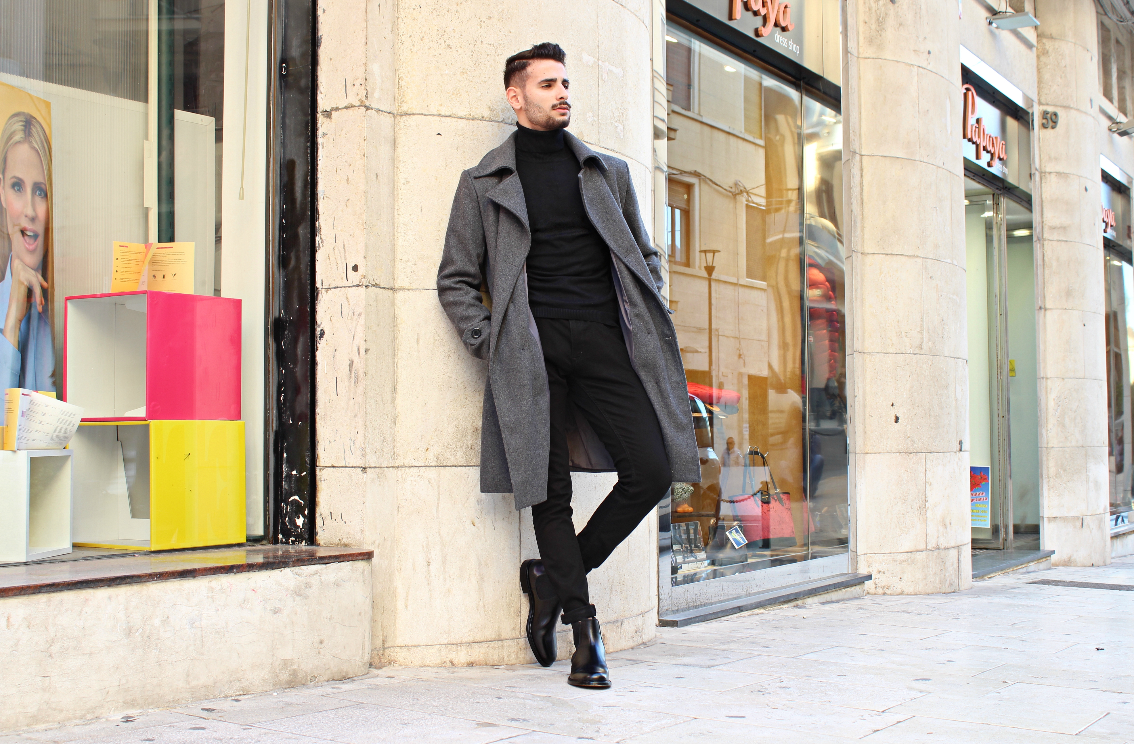 De toute façon, si vous voulez sortir un peu des sentiers battus pour une tenue plus originale, ce que vous devez garder à l’esprit (quelles que soient les couleurs que vous choisissez), c’est le contraste, comme vous pouvez le voir sur les photos, en fait, j’ai voulu mettre en valeur le manteau exprès avec une tenue noire unie.